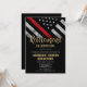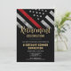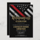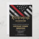 Cette conception comprend un drapeau de pompier avec des rayures noires et blanches, ainsi qu'une mince bande rouge. "Célébration de la retraite" est au-dessus de tous les détails du parti pour la célébration de la retraite du pompier, du lieutenant ou du chef.