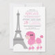 Invitation Poodle rose Tour Eiffel Adorable Anniversaire