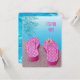 Des tongs à pois roses et blancs sont disposés près de la piscine pour une invitation à la piscine.