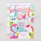 Invitation Pool Party Bash Unicorn Mermaid Flamant rose