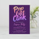 Invitation Pop Fizz Clink Purple Et Rose Calligraphie Script