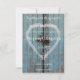 Une vieille porte de grange rustique faire-part de mariage. La porte était de la vieille peinture bleue clignotante a confié un loquet métallique. Un coeur blanc doux forme le centre de ce design mariage. Le dessin a le nom du marié et du marié en lettres de trait de brosse. Si vous désirez de l'aide pour customiser cette conception, veuillez utiliser pour demander à ce concepteur un bouton, juste en dessous de ce texte.