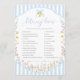 This game features a spring wildflower blue bow ribbon design with a hand-lettered script font. The script headings are images that cannot be edited. All of the other text is fully editable. For more advanced customization of this design, simply select the "Customize It" button above.