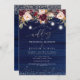 Fleurs aquarelles boho roses et pivoines bourguignonnes et blush avec bois rustique en bleu marine et pots mason. Accentué d'un script manuscrit faux or élégant et moderne Invitation de mariage. Couleur de fond DIY.