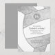 Cette invitation à la fête d'anniversaire sur le thème du volleyball présente l'image réaliste d'un volleyball abstraite surdimensionné et stylisé qui a des panneaux gris et blancs - un motif kaléidoscopique floral et artsy est mélangé avec les panneaux gris du volleyball - personnalisez avec ses détails de fête - par katz_d_zynes