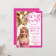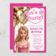Jolie invitation à la fête d'anniversaire de poupée mode avec poupée mignonne portant une jolie robe rose et de jolis ballons d'or. Cette invitation de fête d'anniversaire de poupée rose fonctionne pour n'importe quel âge, il suffit d'ajouter vos détails de l'événement.