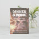 Cette invitation de photo de dîner et de vin présente un décor de table avec un verre à vin et des fleurs à l'arrière-plan, que vous pouvez remplacer par une autre photo. La typographie présente des polices sérif rustique et sans empattement avec juste la bonne quantité d'informations importantes. Idéal pour un restaurant, un bar ou tout lieu organisant une dégustation ou un accord mets-vins. Personnalisez-le avec vos informations, détails et URL pour que les invités scannent via le code QR au dos pour réserver, voir le menu, consulter une carte ou les détails de l'événement sur un site web, une page ou une publication.