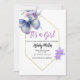 Cette carte de baby shower charmante met en vedette un papillon fantaisiste et un bouquet floral vibrant, parfait pour célébrer une nouvelle arrivée.