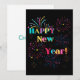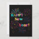 Cette invitation présente les mots "Happy New Year" dans une police unique et grasse avec des lettres de différentes couleurs, ainsi que des feux d'artifice et des serpentins de confettis dans le thème et le style du Nouvel An. Imprimé sur un papier classique de 17,5 pt d'épaisseur avec une finition mate non couchée et une texture coquille d'œuf, fabriqué et imprimé aux États-Unis avec "Cheers!" imprimé au verso.