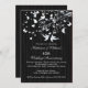 Belle invitation de fête d'anniversaire de mariage d'oiseaux amoureux élégants et modernes avec un couple d'oiseaux amoureux sur une branche d'arbre ornée de papillons et de cœurs sur un fond noir classique et élégant à rayures fines. Parfaite pour une célébration d'anniversaire de mariage de 25, 30, 40, 45, 50 ou 60 ans. Disponible dans notre boutique dans un grand assortiment de couleurs modernes et chic.
