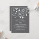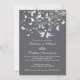 Invitation de fête d'anniversaire de mariage élégante et moderne à l'effigie d'oiseaux amoureux, représentant un couple d'oiseaux amoureux avec une branche d'arbre ornée de papillons et de cœurs sur un fond gris charbon foncé à rayures fines. Parfaite pour une célébration d'anniversaire de mariage de 25, 30, 40, 45, 50 ou 60 ans. Disponible dans notre boutique dans un large assortiment de choix de couleurs modernes et chic.