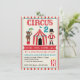 Cette invitation pour la fête d'anniversaire de cirque pour enfants comprend une tente de cirque, un maître de bague, un ours qui se prépare, un mot tiré, du pop-corn et une bannière. La zone de texte est beige avec un contour bleu marsouin et la bordure est composée d'un motif rayé beige et rouge. Je voulais créer une nouvelle collection de thèmes de cirque pour le magasin parce que cela a été un thème populaire dans le passé et amusant à concevoir. Même invitation de design avec espace photo est disponible au magasin. Cette invitation à la fête d'anniversaire de cirque pour enfants convient à une fête de fille ou de garçon. Il est prêt à se personnaliser.
