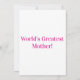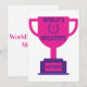 Cette invitation présente les mots "Meilleure Maman du Monde" affichant une police gras d'annuaire avec des lettres violettes ainsi qu'une couronne de laurier avec le numéro 1 au centre sur un trophée de style plat couleur rose sur une base violette dans ce thème de la fête des mères. Imprimé sur un papier classique de 17,5 pt d'épaisseur avec une finition mate non couchée avec une texture coquille d'œuf fabriqué et imprimé aux États-Unis avec "Meilleure Maman du Monde" imprimé au dos.