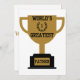 Cette invitation présente les mots "World's Greatest Father" affichant une police de caractères gras d'annuaire avec des lettres noires ainsi qu'une couronne de laurier avec le numéro 1 au centre sur un trophée de coupe de style plat doré sur une base noire dans ce thème de la fête des pères. Imprimé sur un papier classique de 17,5 pt d'épaisseur avec une finition mate non couchée avec une texture coquille d'œuf fabriqué et imprimé aux États-Unis avec "World's Greatest Father" imprimé au dos.