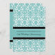 Carte d'invitation pour une fête du 25e anniversaire de mariage dans un élégant motif damassé floral moderne turquoise bleu, noir et blanc, délicat et contemporain. Personnalisable avec les détails de votre fête.