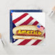Invitation patriotique avec hot dog sur assiette drapeau pour la fête du 4 juillet.