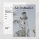 Invitation à la fête d'anniversaire à thème nautique pour un homme de 70 ans. Le thème se concentrera davantage sur les phares, car ils sont ses préférés. L'image a été éditée pour trouver toutes les couleurs argentées, car le phare est en fait un brun foncé. Les mots peuvent être changés à la fois sur le devant, ou sur le dos, car le nom aura probablement besoin d'être changé. Idéal pour une soirée nautique.