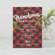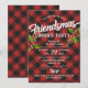 Invitez vos meilleures amies à votre fête de fin d'année/Noël avec cette invitation élégante. Le design présente un fond à motif carreaux de style buffalo rouge et noir, des branches de houx aquarellées et un espace pour les informations sur votre fête. Se coordonne avec nos autres articles de papeterie et accessoires Red Buffalo Plaid.
