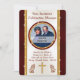 Invitation personnalisable pour anniversaire d'église ou TOUTES occasions. Vous pouvez TRANFÉRER ce modèle sur des cartes postales pour des invitations d'église peu coûteuses, des fournitures pour fêtes d'église, des idées pour remercier le pasteur, des cadeaux et plus encore. Un superbe bordeaux / marron, or et ivoire mettra magnifiquement en valeur la PHOTO de votre église ou du pasteur et de son épouse ou vous pouvez SUPPRIMER la photo du pasteur pour faire apparaître une grande croix bordeaux.