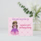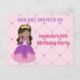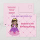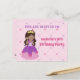 Cette carte d'invitation pour l'anniversaire d'une princesse rose adorable présente une jolie petite fille hispanique portant une belle robe de bal rose. Personnalisez cette invitation de fête pour enfants avec le nom de votre enfant en violet charmant et écrivez vos détails au dos.