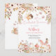Célébrez le premier anniversaire de vos petits avec cette invitation de premier anniversaire féerique et enchantée. Avec des illustrations fantaisistes de fées, de papillons, de fleurs, de champignons et de licorne, ce design capture la magie d'une fête dans un jardin de conte de fées. Des florales pastel douces encadrent joliment la carte, tandis que des détails ludiques créent une atmosphère de rêve parfaite pour les célébrations estivales. Personnalisez avec le nom de votre enfant, les détails de la fête et les informations de RSVP pour le rendre vraiment spécial. Un choix charmant pour les parents qui prévoient une fête d'anniversaire féerique, enchantée ou inspirée de la forêt.
