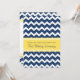 Carton d'invitation pour une fête du premier anniversaire de mariage, avec un motif rétro à chevrons et rayures en bleu marine foncé, jaune citron vif et blanc, élégant et contemporain. Personnalisable avec les détails de votre fête.