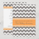 Carton d'invitation pour une fête du premier anniversaire de mariage dans un style amusant et moderne avec un motif rétro en chevrons zigzags orange mandarine, gris et blanc, élégant et contemporain. Personnalisable avec les détails de votre fête.