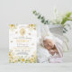 Mettez en valeur votre bébé chéri avec cette invitation d'anniversaire photo "Petit Miel". Ce design présente un emplacement pour une photo personnalisée aux côtés d'une ruche d'abeilles à l'aquarelle dorée et d'abeilles qui bourdonnent dans un pré. Entouré de marguerites élégantes et de tournesols, il crée une apparence chaleureuse et accueillante pour un premier anniversaire. Un moyen parfait de partager un souvenir cher tout en invitant vos proches à une fête "d'anniversaire abeille" sur le thème du jardin ensoleillé.