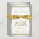 Cette invitation argent gris et or pour le 25e anniversaire de mariage a un RUBAN IMPRIMÉ et un nœud avec une broche de diamants et de bijoux IMPRIMÉS qui aurait l'air particulièrement élégante sur le papier métallisé givré. L'invitation est entièrement personnalisable. Si vous avez besoin de produits assortis, veuillez envoyer un courriel à niteowlstudio@gmail.com avec votre demande.