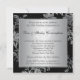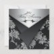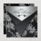 Cette invitation d'anniversaire de mariage de 25 ans au look brocart floral noir et argent élégant a des rabats noirs qui sont IMPRIMÉS pour donner l'impression qu'ils sont ouverts. Elle comporte un rouleau noir décoratif sur le devant, ainsi que des mots élégants qui disent "Anniversaire de mariage de 25 ans". Vous pouvez les supprimer si vous souhaitez ajouter votre propre texte. Elle serait particulièrement élégante sur le papier métallisé glace. L'invitation est entièrement personnalisable. Si vous avez besoin de produits assortis, veuillez envoyer un courriel à niteowlstudio@gmail.com avec votre demande.