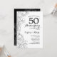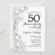Invitation pour la fête du 50e anniversaire de mariage à fleurs noires et blanches. Design moderne minimaliste avec des dessins de contours botaniques et une typographie en police script. Carte d'invitation élégante parfaite pour une célébration élégante. Peut être personnalisée pour n'importe quelle année de mariage. Cartes d'invitation imprimées sur Zazzle ou modèle numérique téléchargeable instantanément.
