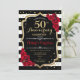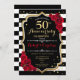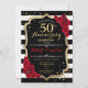 Invitation pour le 50e anniversaire de mariage Design élégant noir blanc rouge avec faux brillant. Rayures noires et blanches avec roses rouges. Parfait pour une fête élégante.
