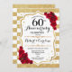 Élégante invitation pour la célébration des 60 ans de mariage. Invitation imprimée ou modèle numérique en blanc, rouge et or faux. Caractéristiques : rayures, police de caractères script et roses rouges. Peut être personnalisé pour n'importe quelle année de mariage.