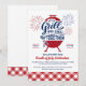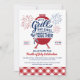 Invitez vos amis et votre famille à célébrer le Quatre Juillet avec cette invitation "Grill and Chill Ensemble". Le design présente une illustration classique de barbecue avec des feux d'artifice et une typographie personnalisée pour mettre l'accent sur les grillades et les moments de détente qui se passeront ensemble ! Le bas de l'invitation comprend un gingham à carreaux rouges classique pour planter le décor d'une bonne vieille célébration !