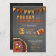 Invitation pour le jour de match de Thanksgiving Touchdowns et dinde - Invitation pour le jour de match, avec un petit dinde qui regarde depuis le coin et un ballon de football. Espace pour tous vos détails d'événement. Cette fête de Tailgate est parfaite pour les vacances ou tout événement de jour de match.