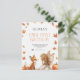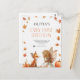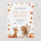 Invitation pour le premier anniversaire de la fée d'automne avec un renard et une fée avec des ailes et des feuilles d'automne et des citrouilles