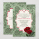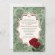 Cette élégante invitation pour un 25e anniversaire de mariage comporte une paire de roses rouges posées sur un fond en damassé vintage et fleurs vert sauge. Elle est présentée ici sur du papier simple, mais elle aurait fière allure sur du papier feutre, lin, recyclé, métallisé glace ou champagne. Tout le texte est entièrement personnalisable. ***VEUILLEZ NOTER qu'il n'y a aucun élément en relief sur cette invitation. Tout est imprimé à plat. De plus, si vous changez la police ou la taille de la police, cela peut modifier l'impression de votre invitation. Elle sera imprimée telle que vous la voyez sur votre écran, donc si vous rencontrez des problèmes d'alignement ou de taille, veuillez me contacter pour obtenir de l'aide. Je ne verrai pas votre invitation une fois que vous l'aurez commandée, et Zazzle ne modifiera RIEN (fautes de