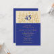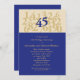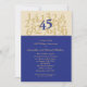 Carton d'invitation moderne et accrocheur pour anniversaire de mariage. Idéal pour célébrer un 45e anniversaire de mariage avec style. Caractérisé par un grand nombre 45 de couleur Saphir, qui est la couleur traditionnelle pour cet anniversaire. Les autres nombres sont représentés dans une couleur plus claire pour symboliser les années passées. Invitation parfaite pour célébrer cet anniversaire marquant à la maison, dans un restaurant ou dans un lieu favori. Design intemporel et élégant. Ajoutez votre propre texte.