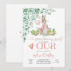 Célébrez le jour spécial de vos petits avec cette invitation d'anniversaire florale lapin fantaisiste. Présentant un lapin aquarelle sucré avec une cape rose et une couronne de fleurs entouré de verdure luxuriante, ce design charmant est parfait pour l'anniversaire des 4 ans d'une fille. Le thème ludique de la forêt ajoute une touche magique, ce qui le rend idéal pour les célébrations de jardin de fées ou de printemps. Personnalisez avec les détails de votre fête pour créer un souvenir que vos invités adoreront.