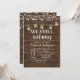 Carte d'invitation d'anniversaire de mariage à cordes lumineuses, carte d'invitation rustique avec fond en bois.