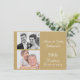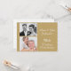 Cette invitation pour les 50 ans de mariage de noces d'or présente un fond de couleur or et une fine décoration en dentelle sur les côtés ainsi que deux zones pour les photos des conjoints. Le dos est blanc avec une fine décoration en dentelle dorée. Il est prêt à être personnalisé et convient pour un 50ème anniversaire de mariage de noces d'or.