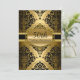 Invitation pour l'anniversaire de mariage. Motif damas or et noir avec nœud en strass. Exclusif Zazzle. Personnalisez avec vos propres détails. NOTEZ TOUTES les images plates ! Elles ne contiennent PAS de diamants ou de bijoux réels !!