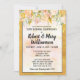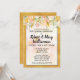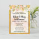 Une robe fleurie rose et or habille cette invitation pour les 50 ans de mariage. Un fond doré riche encadre les détails du mariage qui sont placés sur un fond pastel à l'aquarelle. Les noms des époux sont écrits dans une jolie police script. Modèle facile à personnaliser.