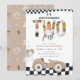 Invitation pour les 2 ans de voiture de course vintage, Invitation de 2e anniversaire de voiture de course beige garçon avec photo "Deux fois vite"