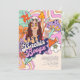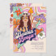 Ajoutez une touche de flower power à votre week-end d'enterrement de vie de jeune fille avec cette invitation groovy. Répandez la paix et les bonnes ondes avec ce design coloré dans le style graphique de l'ère hippie des années 60 et 70. Avec des éléments de design audacieux et colorés et une police accrocheuse, cela annonce le "Dernier Boogie de Bachin'" pour la future mariée. Ajoutez votre itinéraire au verso où le thème continue en utilisant l'argot de l'époque pour 'Vendredi Fab, Samedi Slammin' et Dimanche Stellaire'. Recherchez ID929 pour voir d'autres produits de la collection funky.