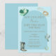 Caractérisé par un design moderne avec des couleurs douces. Cette simple invitation de baby sprinkle sur le thème « Pas notre première rodeo » peut être personnalisée avec les détails de votre événement spécial, avec un fond bleu clair au verso. Conçu par CelebrateWithInk©
