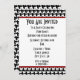 Une simple invitation avec un motif à carreaux en haut et en bas de la face avant. garniture rouge et police rétro. Personnalisez avec les détails de votre occasion. Le côté opposé présente un design uni avec une forme de cercle au milieu, encadrant le texte.