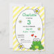 Célébrez le jour spécial de votre enfant avec cette adorable invitation pour une fête d'anniversaire avec une grenouille, des fleurs et des rayures. Découvrez-en davantage de la collection Snookums & Bug Frog Party.