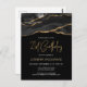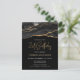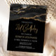 Cette invitation d'anniversaire de 21 ans élégante présente une image aquarelle d'une géode d'agate en noir avec des reflets de faux or. Les mots "21st Birthday" apparaissent en faux or pailleté dans une police manuscrite moderne décorative. Personnalisez-la avec le nom de l'invité d'honneur en texte de couleur or et les détails en blanc.