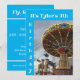 Image d'un manège de balançoires dans un parc d'attractions sur le devant. Détails de la fête au dos.